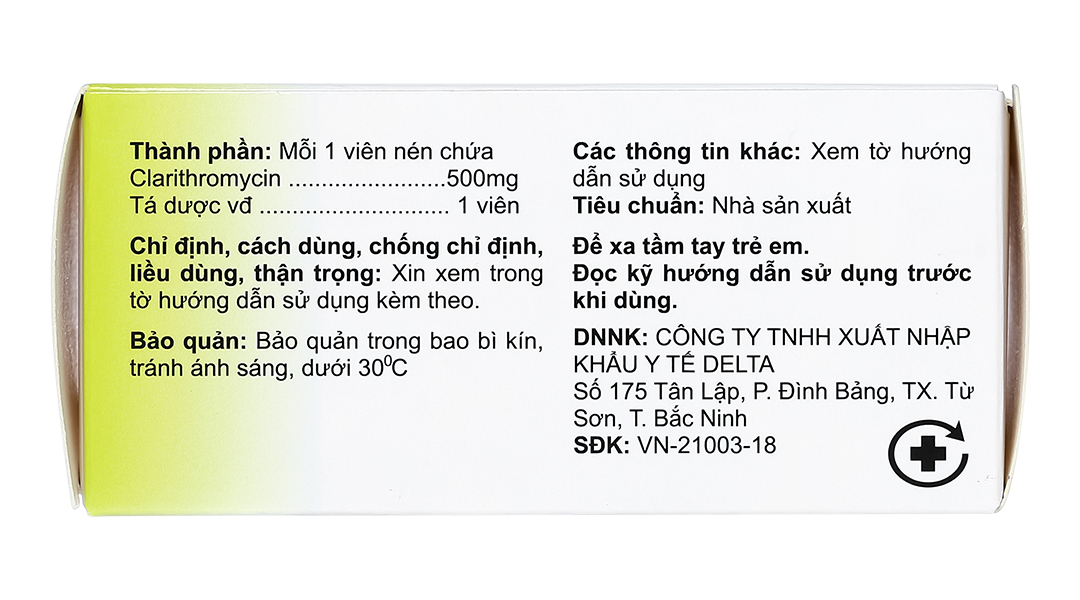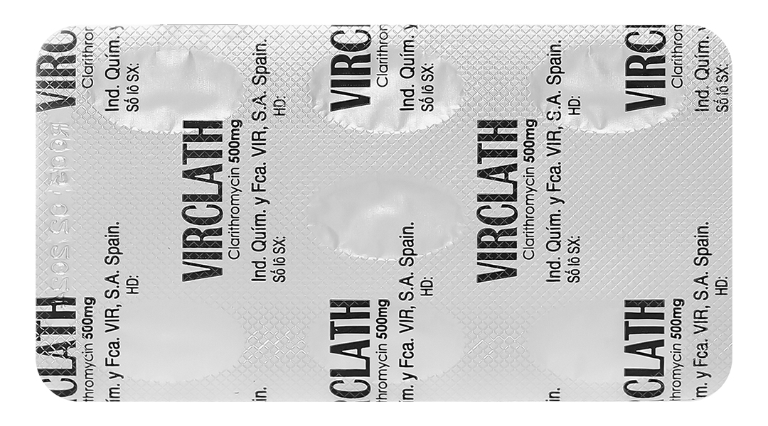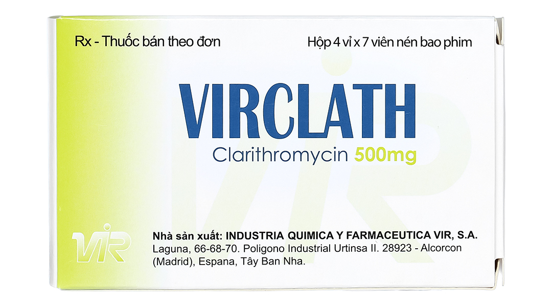 Virclath 500mg Quimica là thuốc kháng sinh nhóm Macrolid bán tổng hợp, được Cục Quản lý Dược – Bộ Y tế cấp số đăng ký VN-21003-18. Đây là phiên bản generic chất lượng cao của Klacid (Abbott), với mỗi viên nén bao phim chứa 500mg Clarithromycin – một dẫn xuất từ Erythromycin cải tiến, tăng tính ổn định acid và hấp thu.