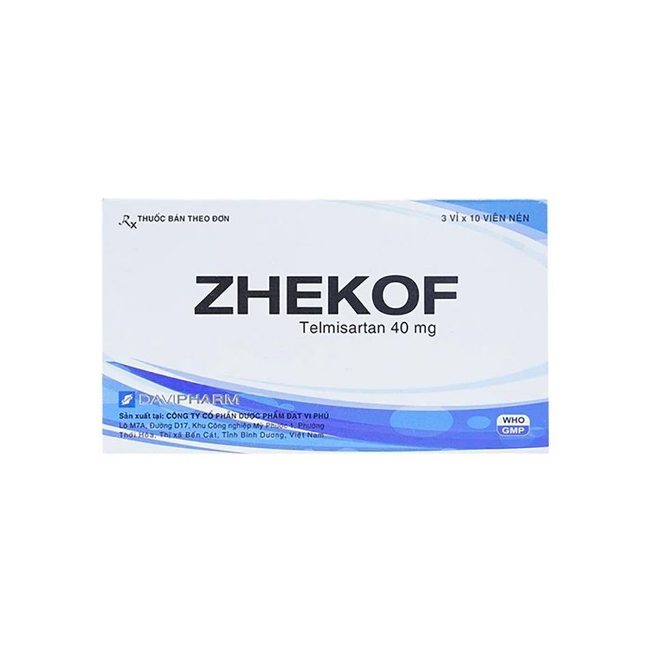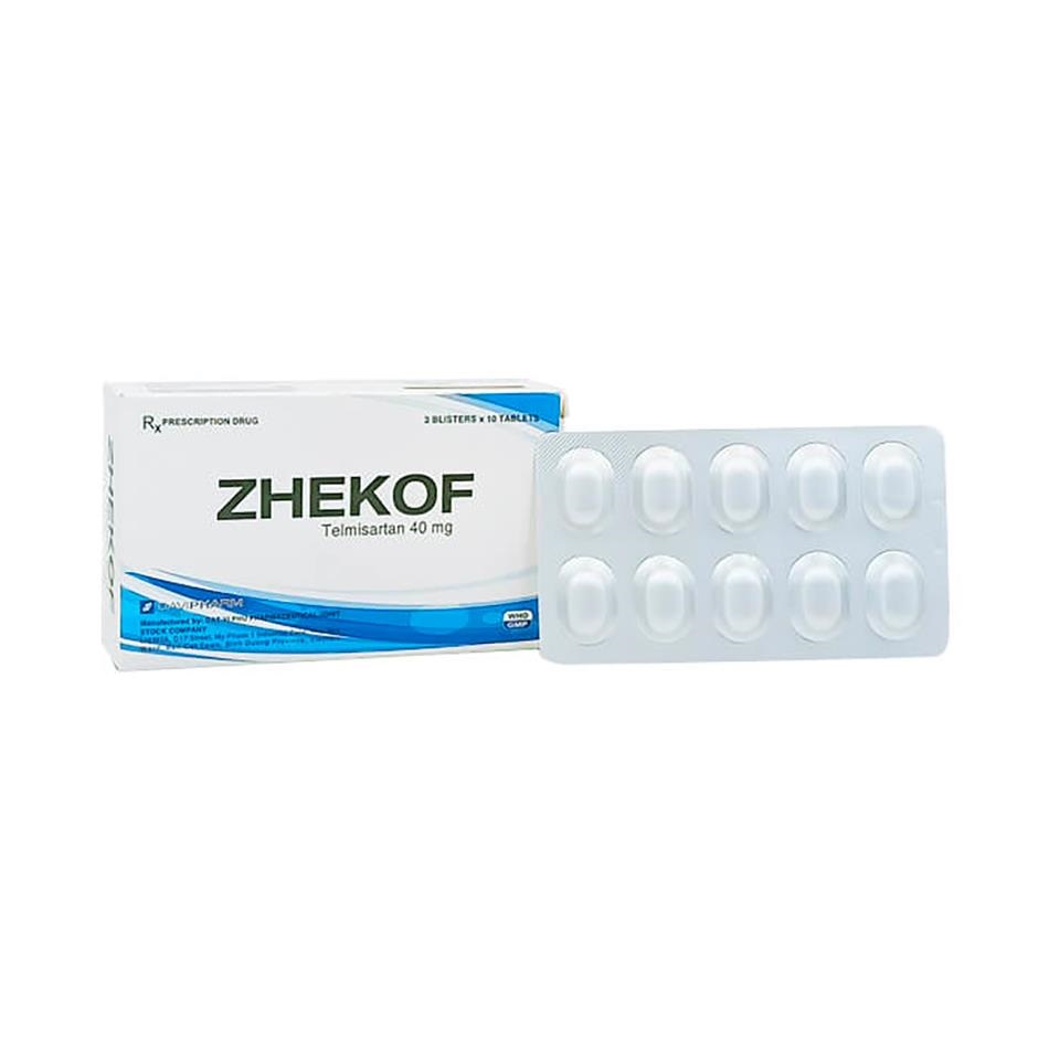 Zhekof 40mg là viên nén chứa hoạt chất chính Telmisartan 40mg/viên. Thuốc thuộc nhóm ARB (Angiotensin II Receptor Blocker) – nhóm thuốc hạ huyết áp được khuyến cáo hàng đầu trong hướng dẫn điều trị tăng huyết áp của Hội Tim mạch học Việt Nam và quốc tế.